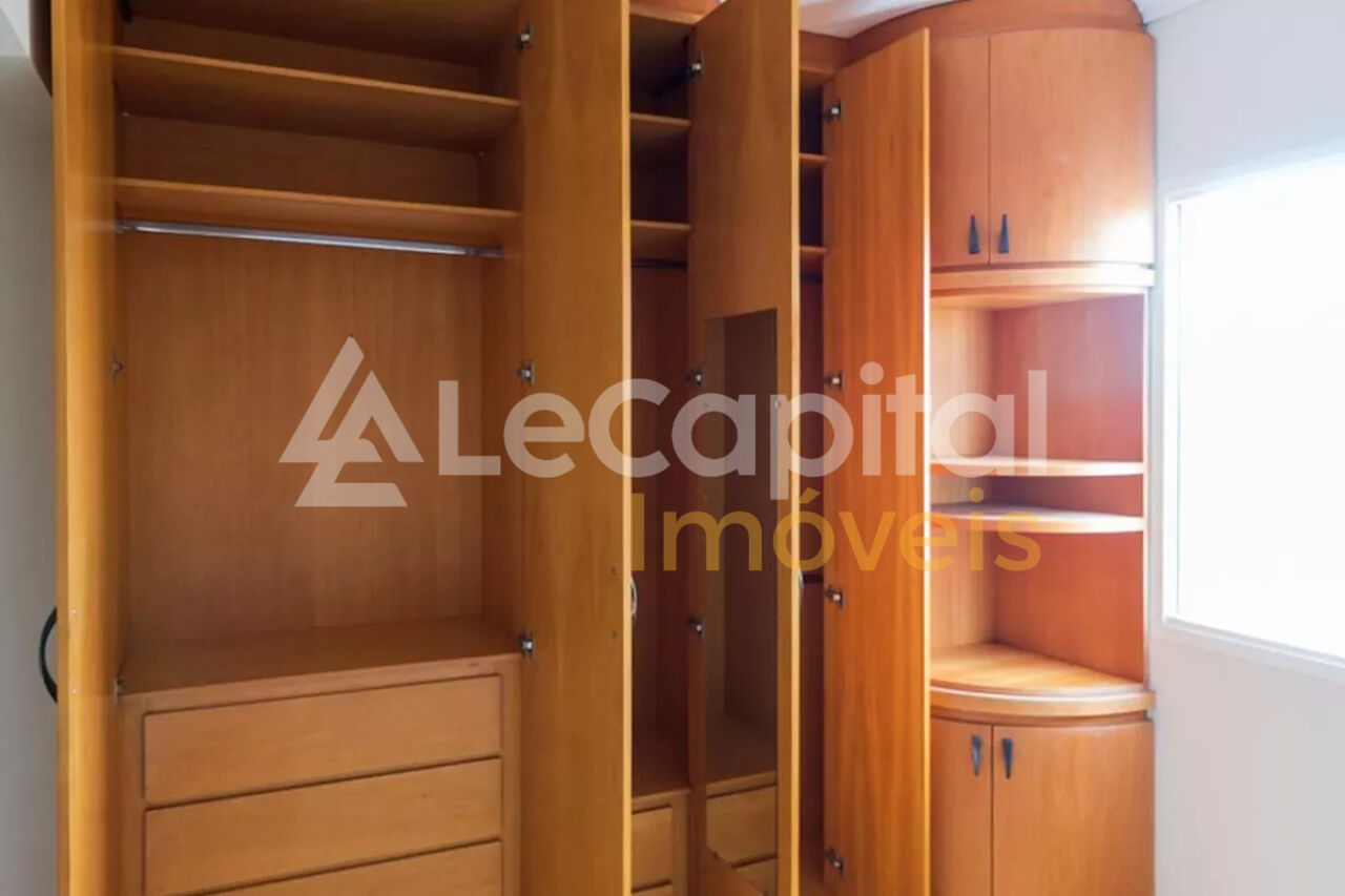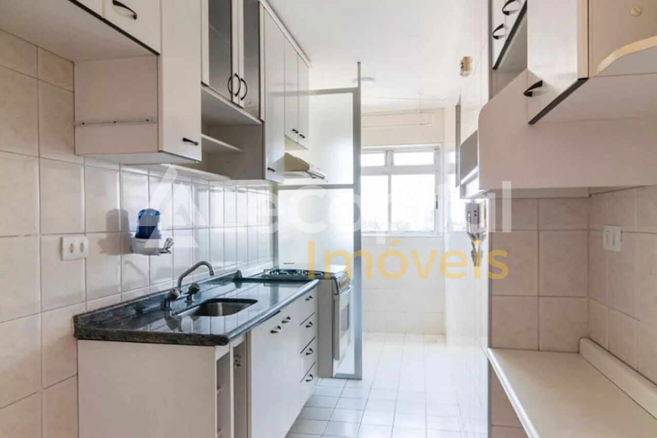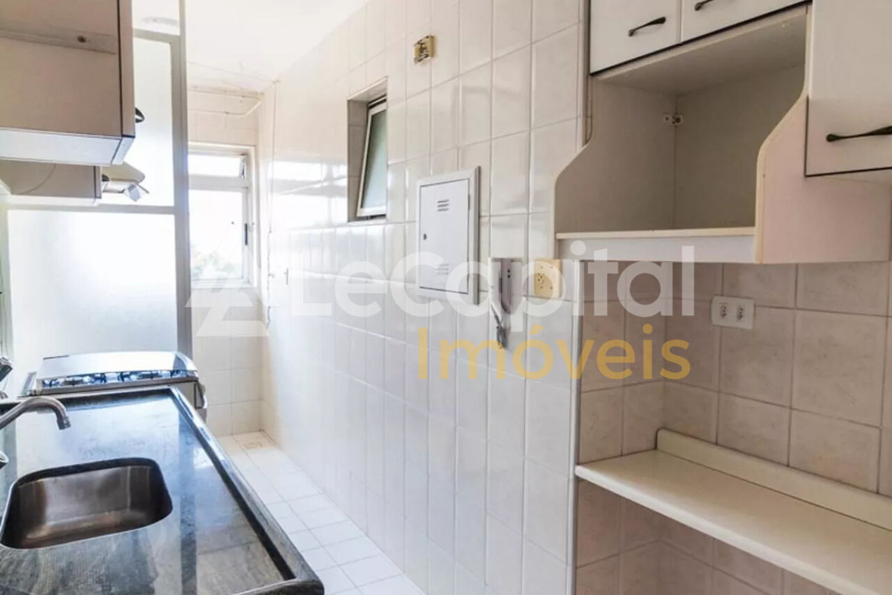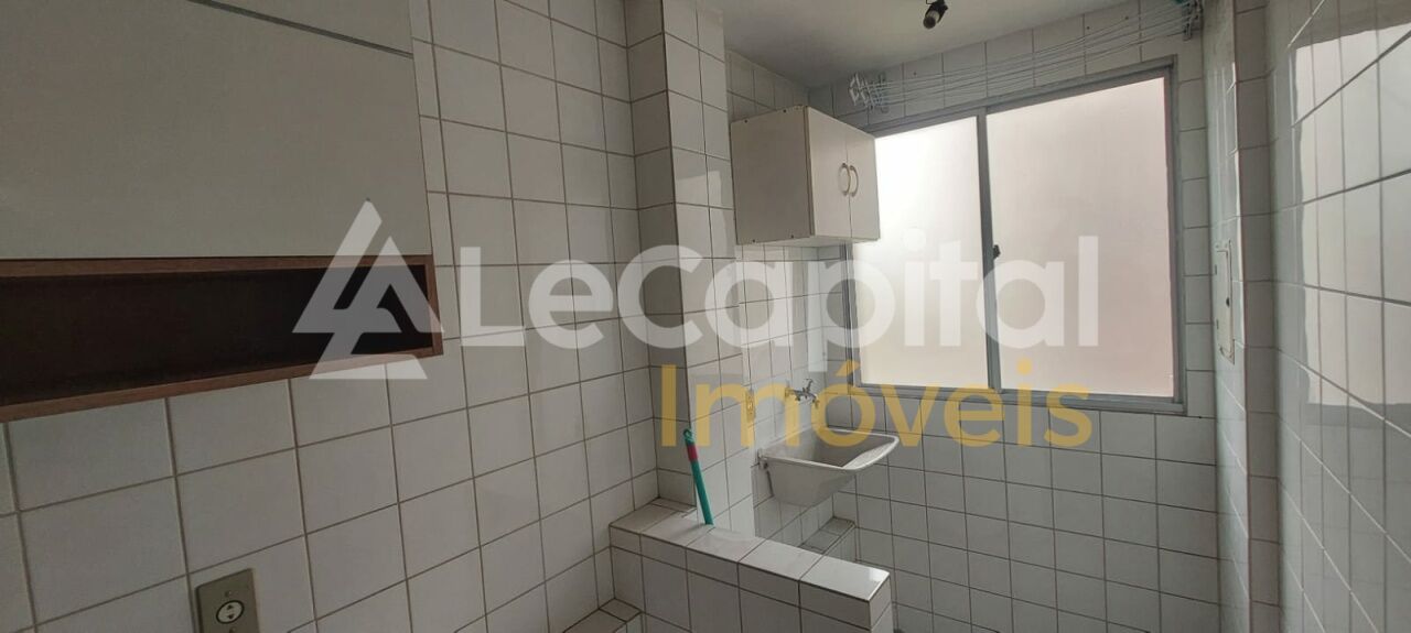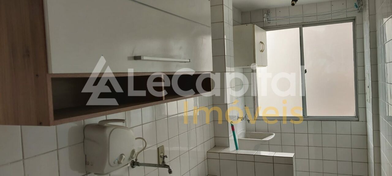 Possui dois quartos com armários, sala espaçosa, sacada, dois banheiros, cozinha planejada, lavanderia, e uma vaga de estacionamento.