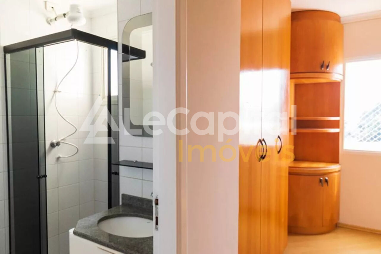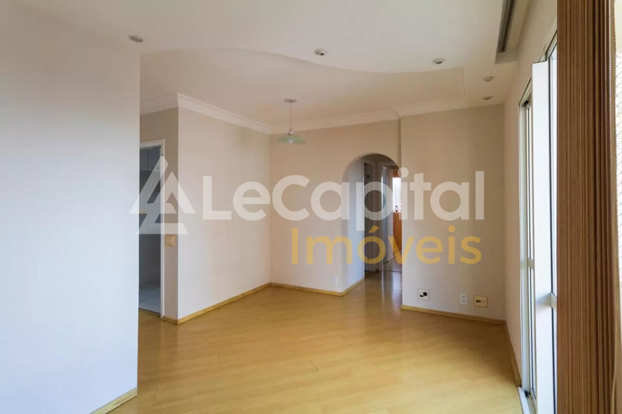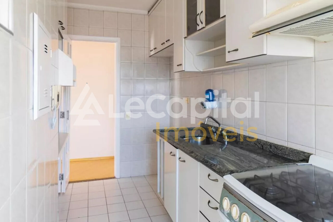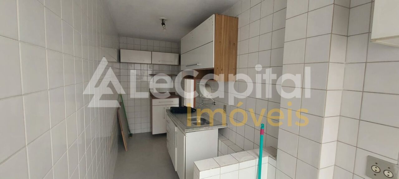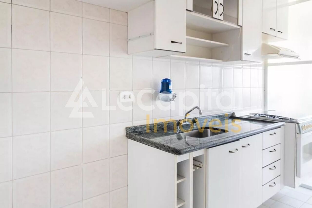 Possui dois quartos com armários, sala espaçosa, sacada, dois banheiros, cozinha planejada, lavanderia, e uma vaga de estacionamento.