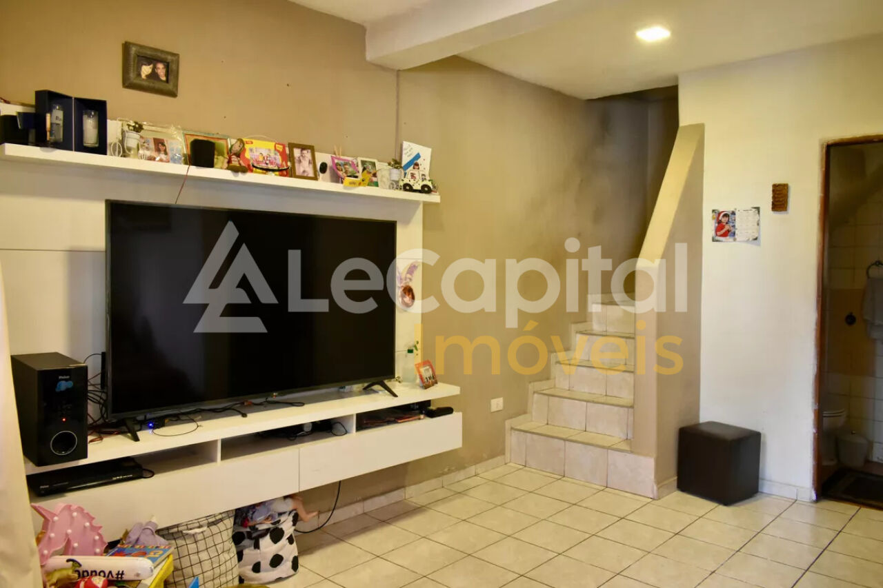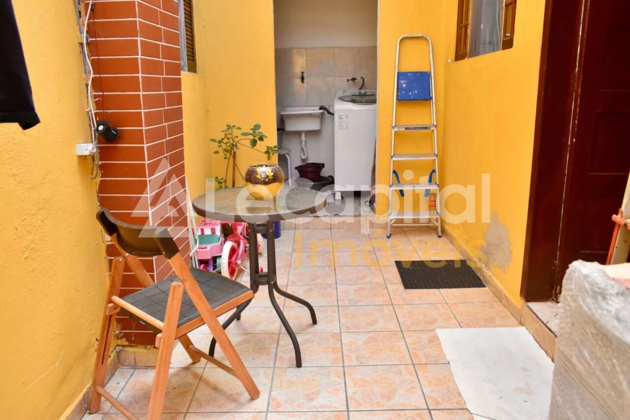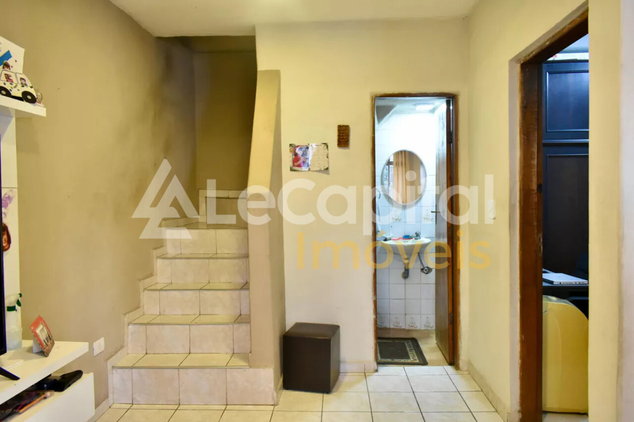 A casa dos fundos possui sala, 1 quarto e lavabo no piso inferior e 3 quartos (1 suite) e 1 banheiro no piso superior.