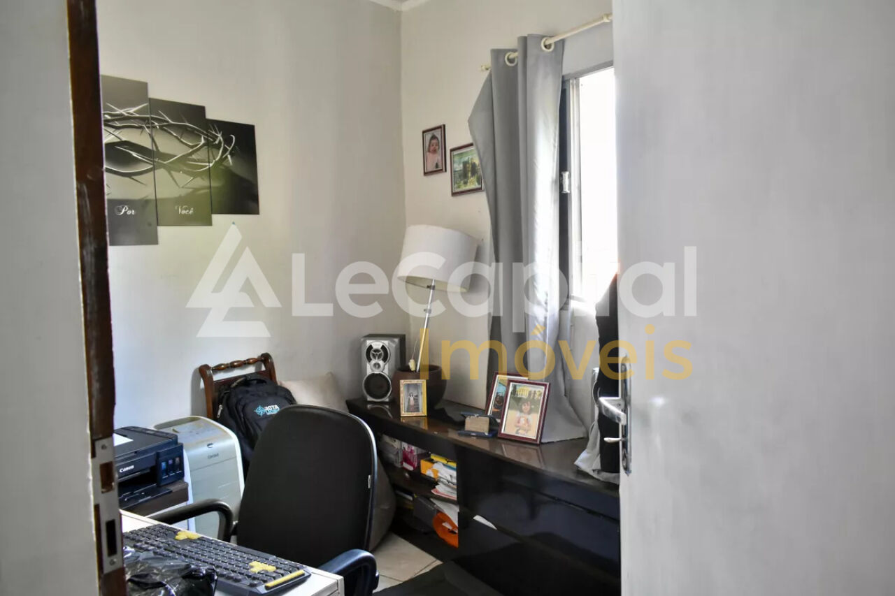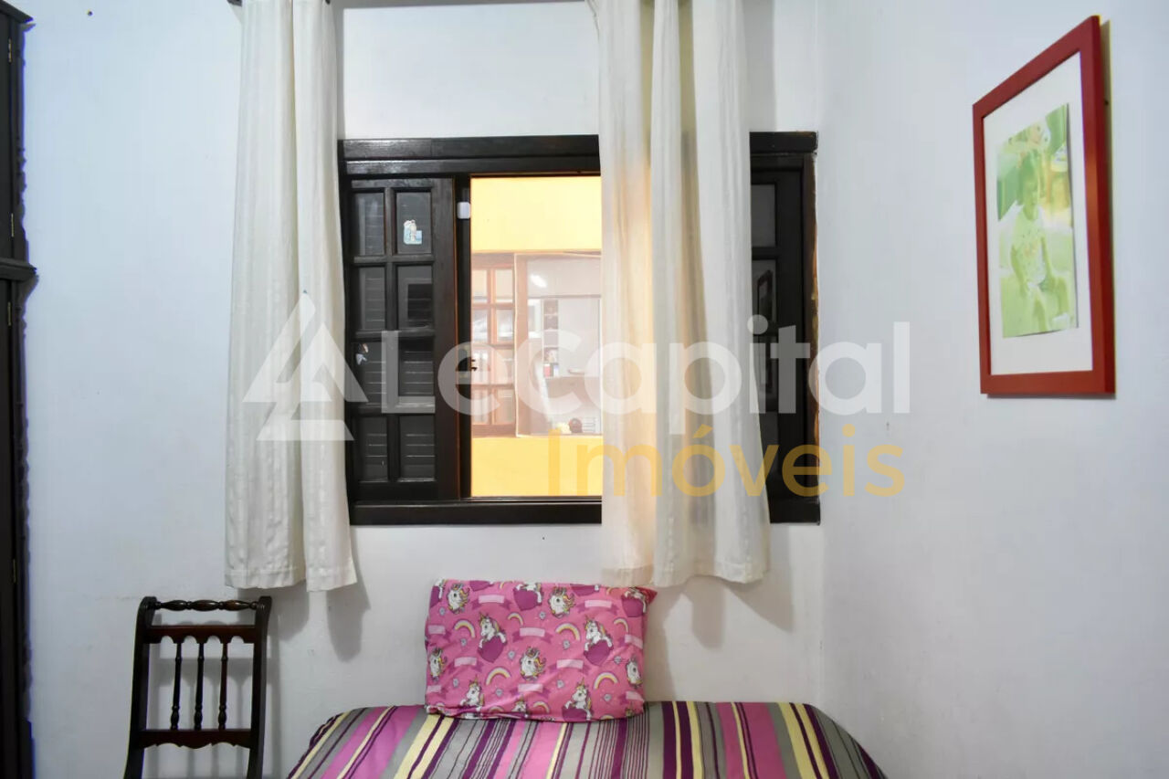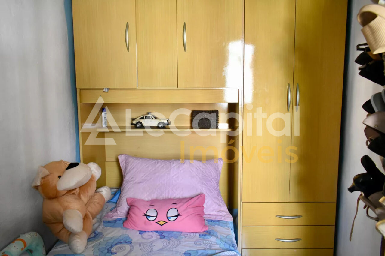 A casa dos fundos possui sala, 1 quarto e lavabo no piso inferior e 3 quartos (1 suite) e 1 banheiro no piso superior.