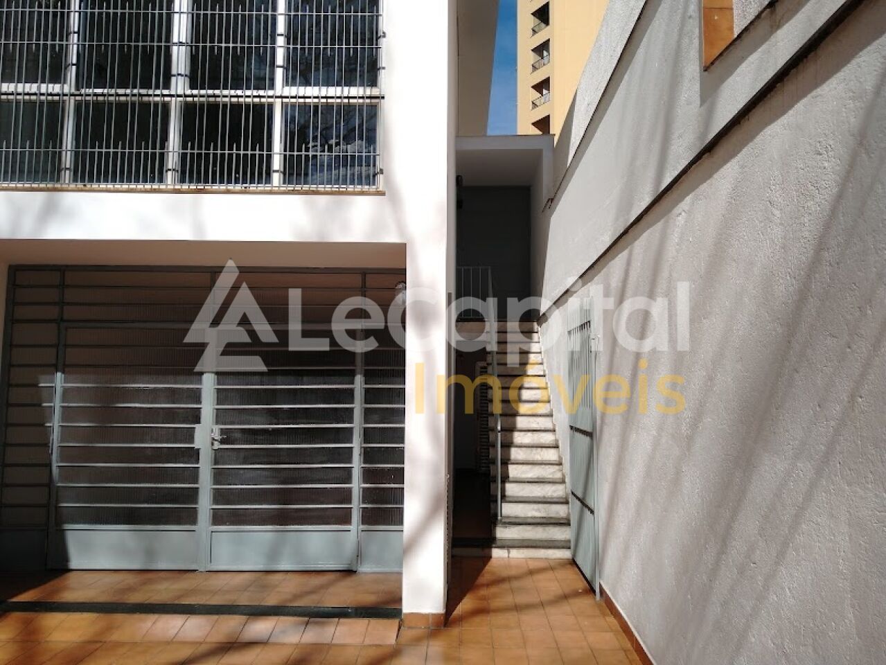 Ao nível da rua, possui garagem coberta para 5 carros e mais 2 descobertas.