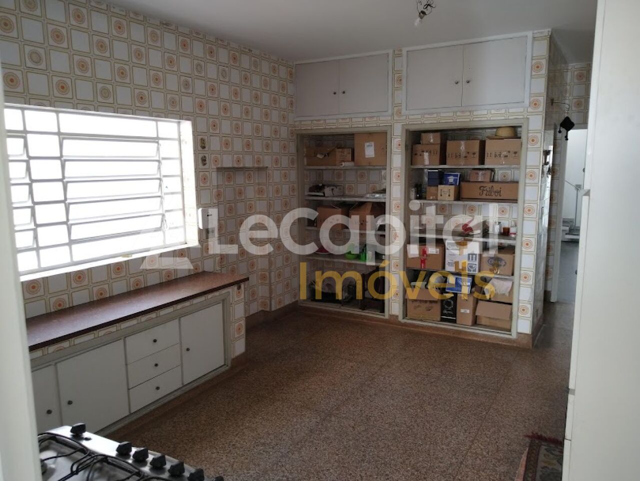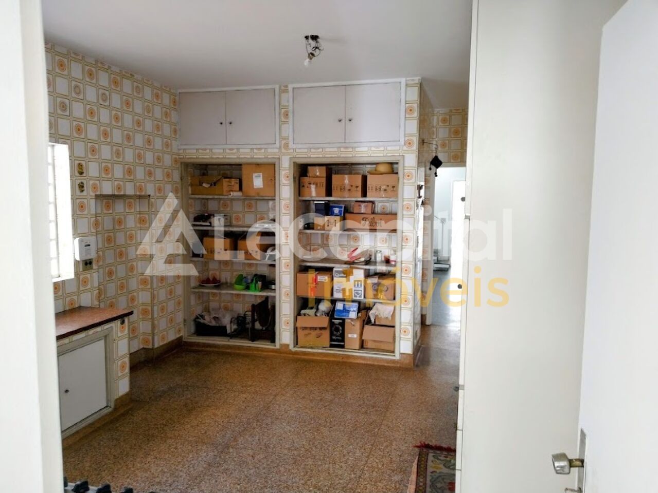 Uma cozinha com armários, varanda, lavanderia com armário embutido, 2 salas espaçosas, sendo uma delas com piso de granito, banheiro, uma edícula, depósito, e área de serviço.